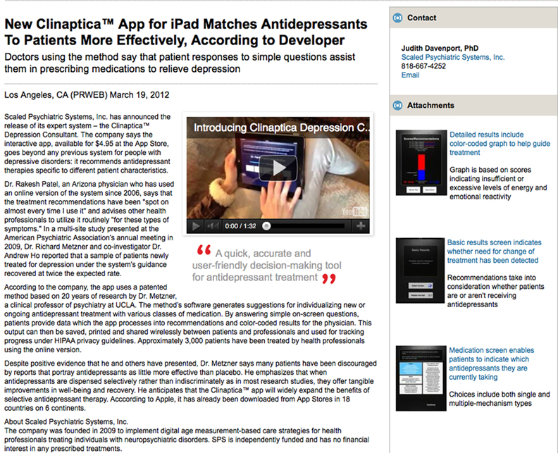 Screen image of PRWeb press release, 3-19-12: