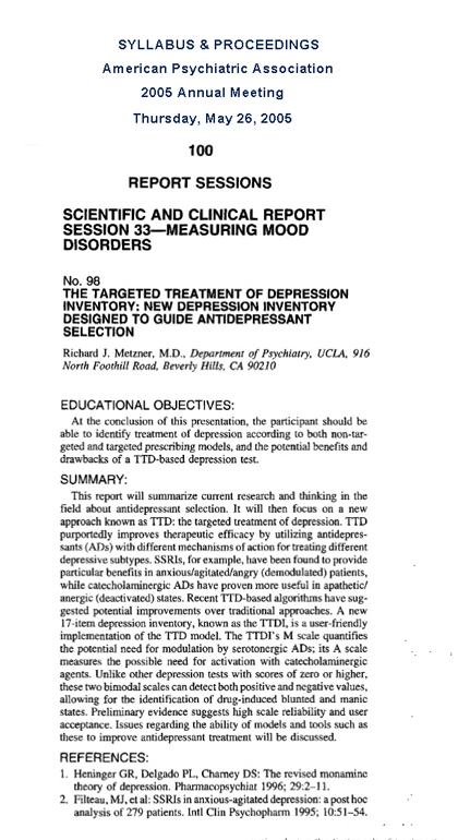 Previous article: Metzner, 2000 APA Annual Meeting Presentation
