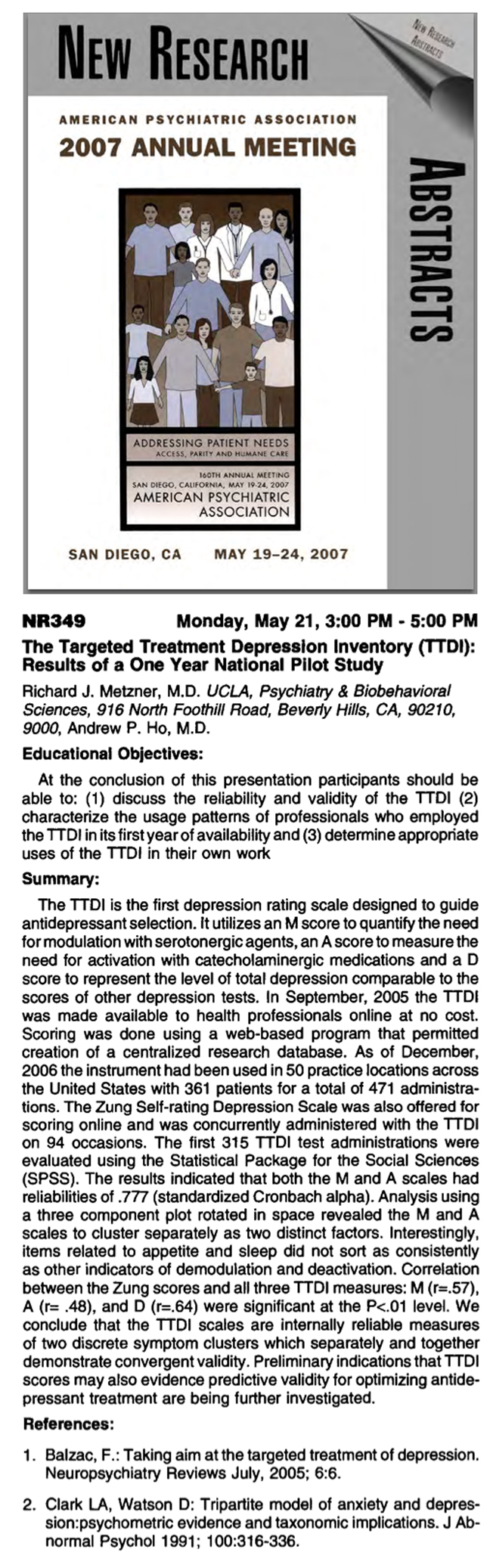 Previous article: Metzner & Ho - A Symptom-Guided System for Improving Antidepressant Outcomes: An Observational Study